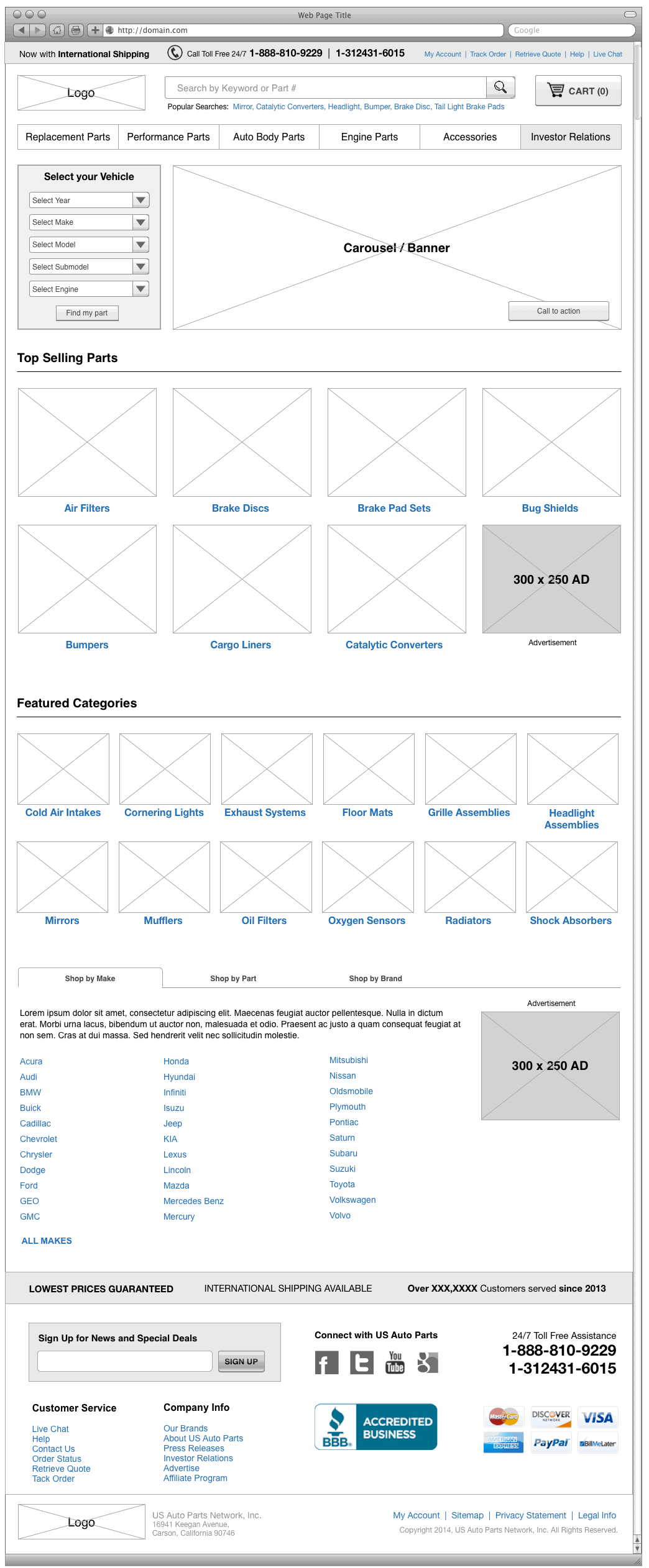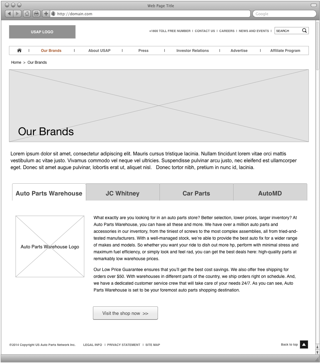 US Auto Parts Responsive Migration Wireframes
